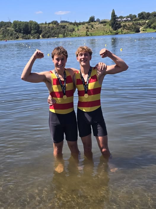 Huge congratulations to our German international students David Strobel and Milo Weber on winning GOLD in the Novice Double Sculls at the New Zealand Club Rowing Championships!