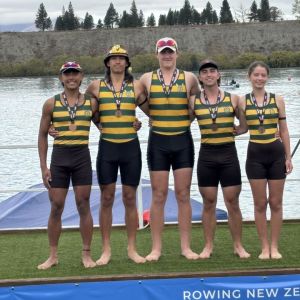 Boys U18 coxed quad winning Bronze 🥉3rd in NZ