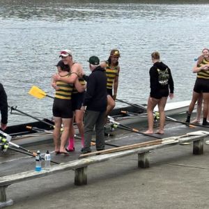 Addison Jenkins, Caralie Hanna, Bailey Barnett, Ruby Bullock, coxswain Morgan Wood.